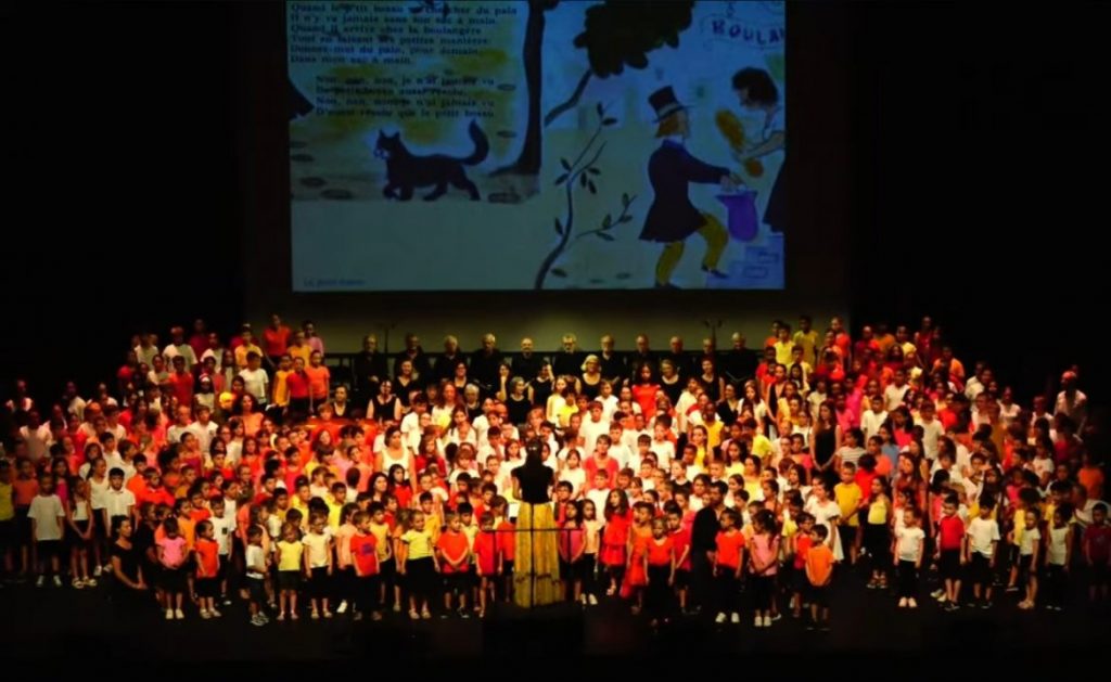 Chaque annĂ©e, avec l’aide de la Ville de Clermont-Ferrand, et en partenariat avec le Choeur RĂ©gional d’Auvergne, la DSDEN63 invite 400 Ă©lèves du dĂ©partement sur la scène Jean Cocteau de la Maison de la Culture. Les enseignants sont formĂ©s Ă la rĂ©alisation de cet Ă©vĂ©nement d’envergure.