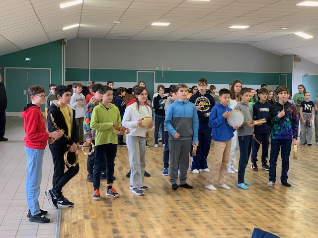 Nos élèves encadrés par la troupe Amelia do Forro au collège avant leur représentation à la Baie des Singes