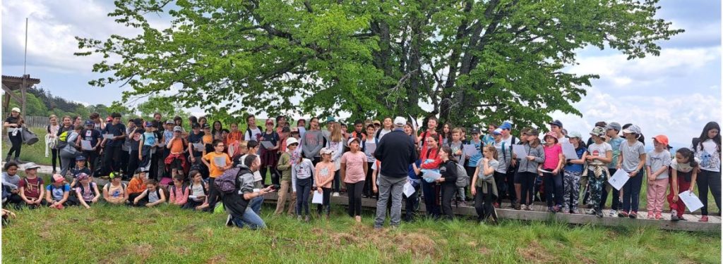 Liaison CM2 6ème : les élèves de Vic-sur-Cère, Thiézac, Polminhac, Raulhac, Yolet ont retrouvé leurs camarades de Carlat lundi 22 mai. Le thème de la journée était : « Partageons notre démarche vers un environnement durable ».