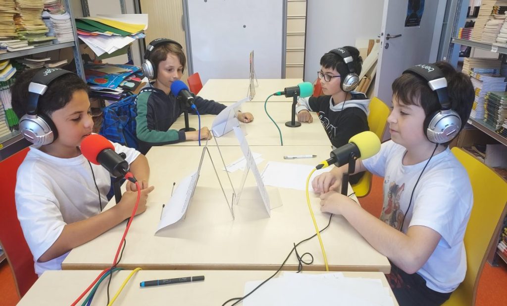 La relève est assurée! Trois élèves de sixième ont découvert la web radio en milieu d’année. Après avoir été « formés » par les grands de troisième, ils souhaitaient commencer à s’engager dans le projet Web radio en nous proposant un premier épisode d’une émission sur les mangas. Théandre, animateur radio interviewent nos deux journalistes en herbe, Thomas et Rani. Louis intéressé, écoute avec beaucoup d’attention ses camarades!