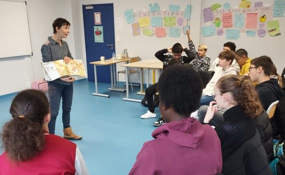 Dans le cadre du Prix inter-établissements "Ec(h)o-lecteurs", les 5EMES 2 et 3 ont pris beaucoup de plaisir à interroger Claire Lecoeuvre, journaliste scientifique et autrice du livre "Les pieds dans la terre". Claire met en lumière l’histoire de cinq familles de paysans, éleveurs, maraîcher, vigneron, producteur de fruits, cinq histoires humaines piochées aux quatre coins de la France qui courent sur trois ou quatre générations et cinq histoires qui se répètent à leur façon.