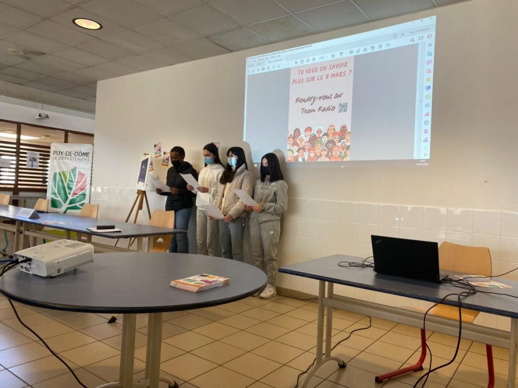 Nos élèves de 3ème du club radio (Rina, Elza, Mervé et Nafouanta) ont pour cette occasion présenté en direct leur émission spéciale sur la journée internationale des droits des femmes, et ont interviewé plusieurs personnalités (interviews à venir !). Elles ont également, elles aussi, été interviewées !
