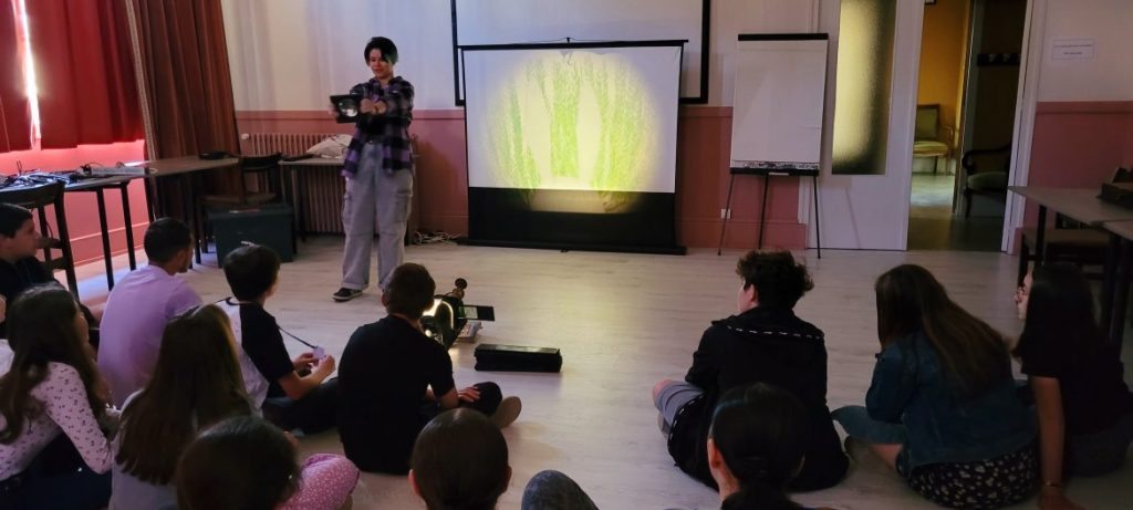 Lors du Festival Plein La Bobine 2023, la classe de 4B a animé des ateliers « leçon de cinéma » auprès de leurs camarades des écoles primaires. Ce travail fait suite à une sensibilisation au cinéma tout au long de l’année en partenarait avec le Festival.