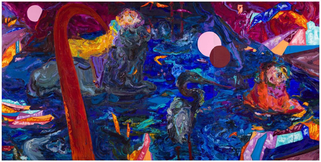 Jeune peintre d’origine syrienne, Miryam Haddad se distingue par ses grandes peintures très colorées aux airs baroques. Dans cet univers dont les territoires n’appartiennent à rien de connu se mêlent les réalités vacillantes du conte et de la croyance, du mythe et des récits archaïques du Moyen-Orient.