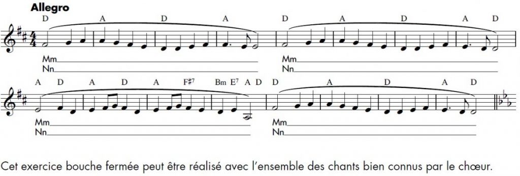 Echauffements vocaux Échauffements vocaux Accueillir Respirer Monnayage de consonnes Exemple avec « Ts » Réveiller MI MAI MA MO MOU NI NAI NA NO NOU The Beethoven Hum Accompagnement et guide mélodique Accompagnement seul Explorer sa voix Vocalise Accompagnement et chant Accompagnement seul Modulation majeur/mineur Exemple Accompagnement seul