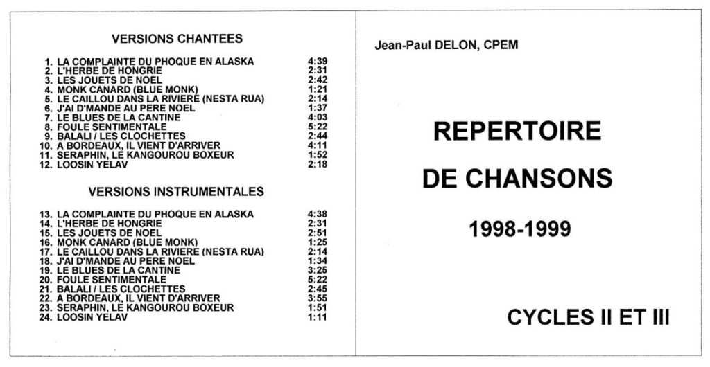 Accueil » Archives classes chantantes » Répertoire 1998-1999