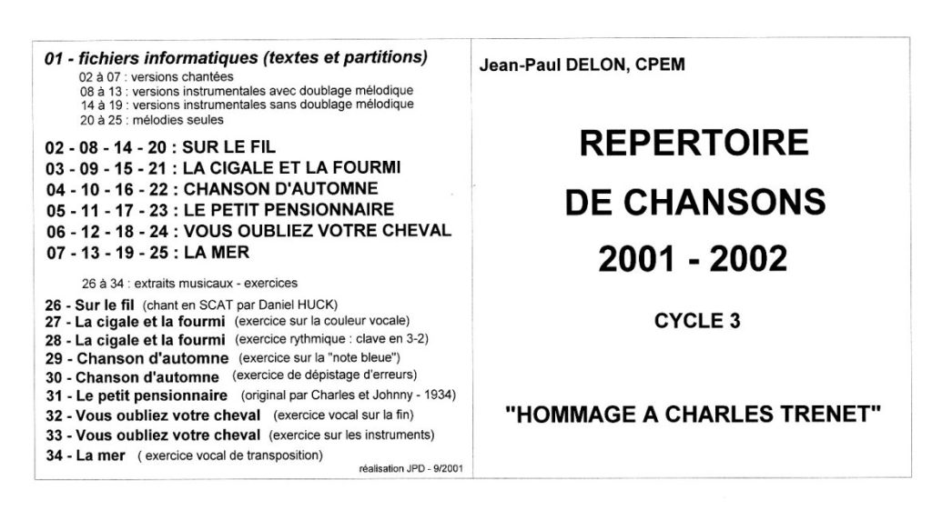 Archives classes chantantes Répertoire 2001-2002 Hommage à Charles TrénetLivret et fichiers à télécharger