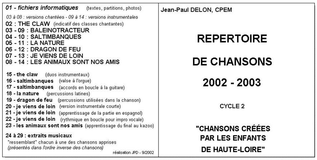 Accueil » Archives classes chantantes » Répertoire 2002-2003