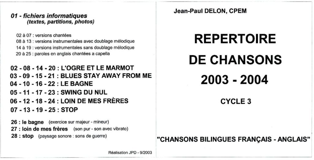 Accueil » Archives classes chantantes » Répertoire 2003-2004