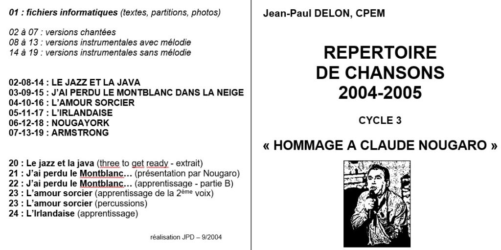 Archives classes chantantes Répertoire 2004-2005 Hommage à Claude NougaroLivret et fichiers audios à télécharger