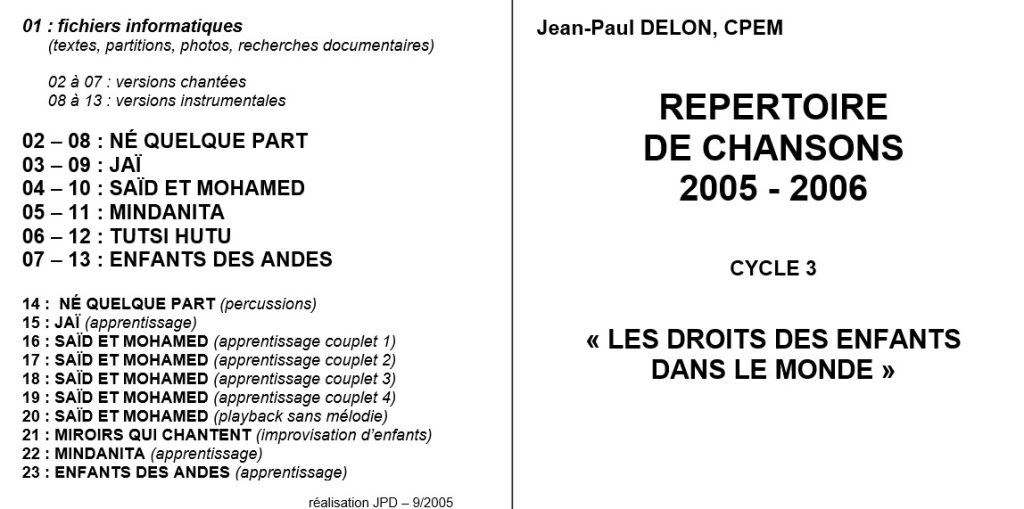 Archives classes chantantes Répertoire 2005-2006 Les droits des enfants dans le mondeLivret et fichiers audios à télécharger