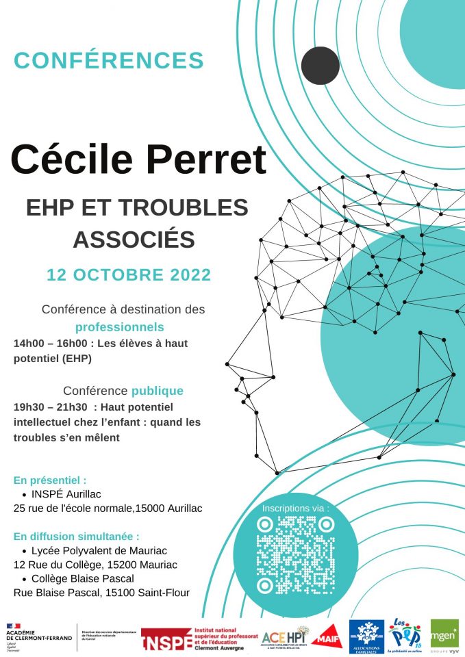 La conférence de Cécile Perret du 12 octobre 2022 sur les élèves à haut potentiel et troubles associés se déroulera en deux temps :