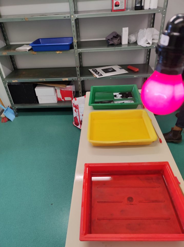 Tirage papier dans le labo photo (la chambre noire) à partir d’un procédé original par contact entre un papier photosensible et un écran d’ordinateur