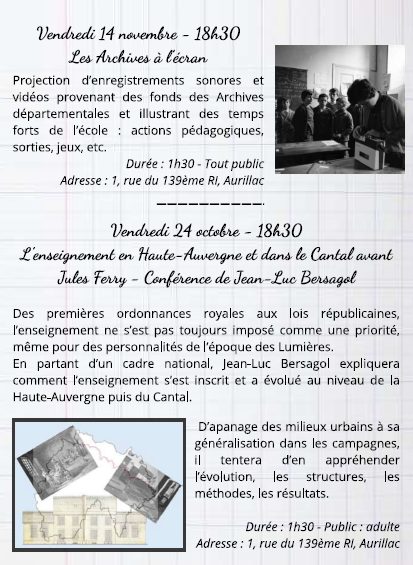 Autour de l’exposition : ateliers, conférences, projections, ciné-débats (en partenariat avec le cinéma Le Cristal d’Aurillac)