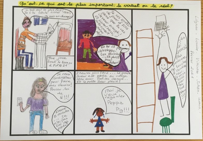 Les élèves de CE2 de la classe d’Isabelle Valette ont mis en images les scénarios qui avaient été imaginés en petits groupes d’APC. Les thématiques étaient inspirées de « Lili se fait piéger sur Internet ».