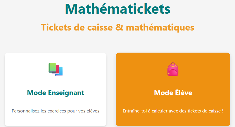Vous cherchez un outil simple, motivant et efficace pour travailler le calcul en classe ? Mathématickets est une application éducative en ligne qui propose aux élèves du CP au CM2 de s’entraîner au calcul à partir de tickets de caisse, une situation concrète et parlante pour donner du sens aux mathématiques.