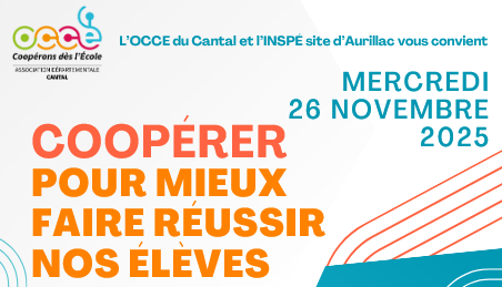 Conférence pédagogique L »OCCE du Cantal organise une conférence pédagogique « Coopérer au mieux pour mieux faire réussir nos élèves » le mercredi 26 novembre à l’INSPE d’Aurillac.