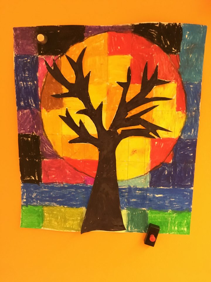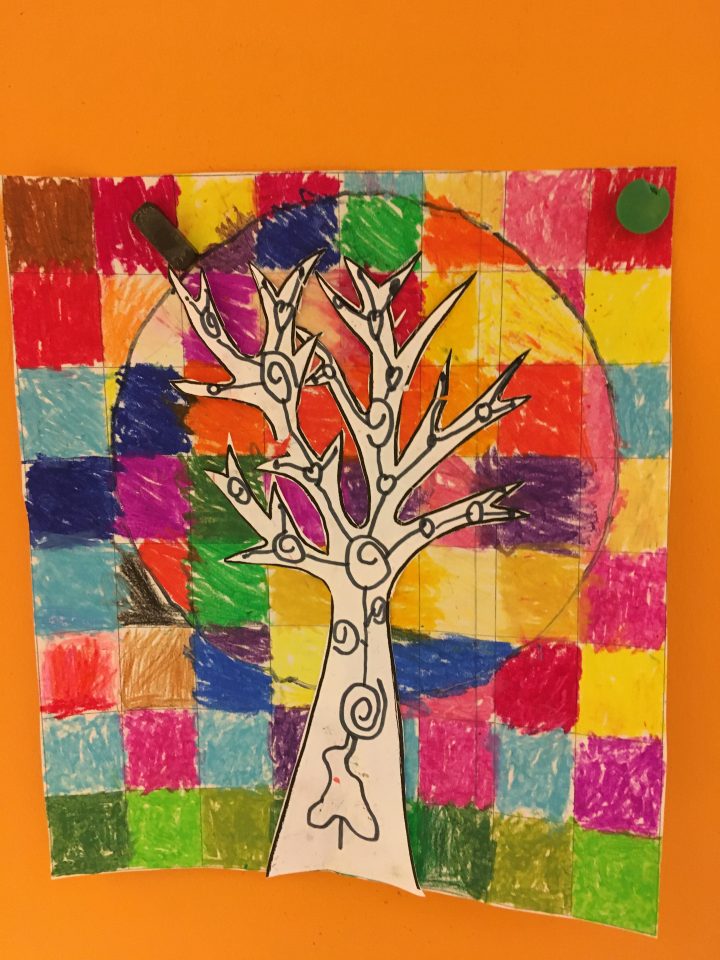 Ces arbres très colorés ont été imaginés par les élèves en s’inspirant des œuvres de l’artiste Loretta Greyson.