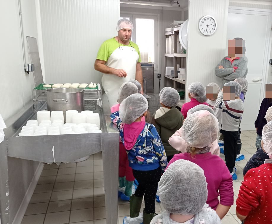 Puis avoir enfilé une charlotte et des chaussons et s’être bien lavés les mains, ils ont découvert les secrets de la transformation du lait. Ils se sont essayé à la fabrication de petits fromages et de yaourts.