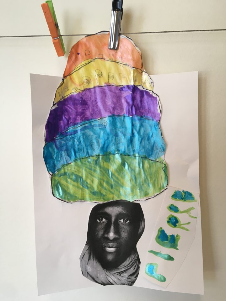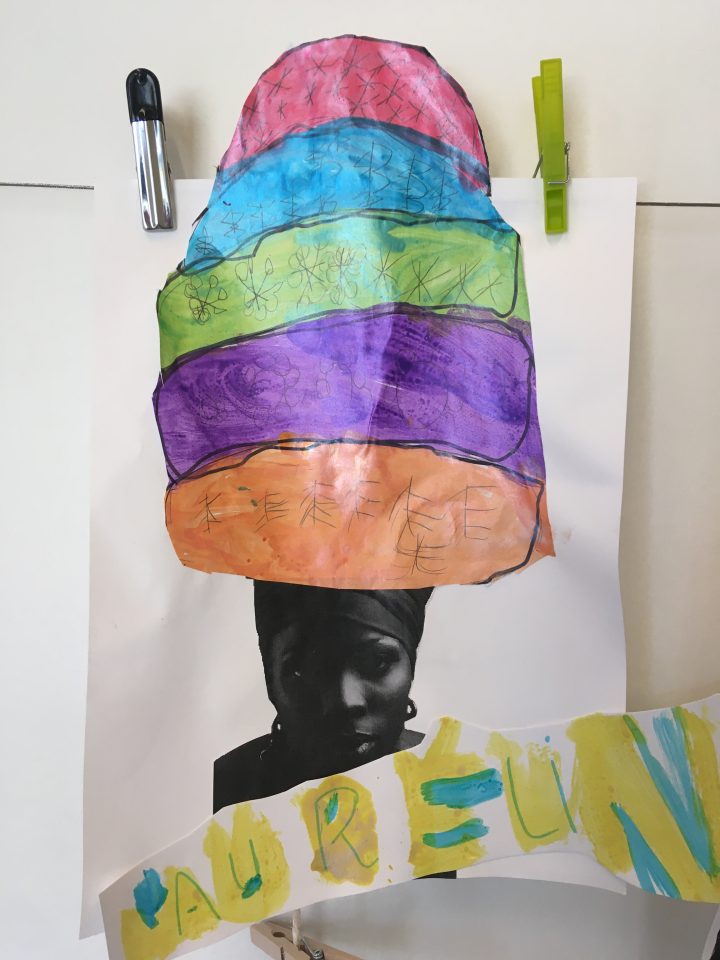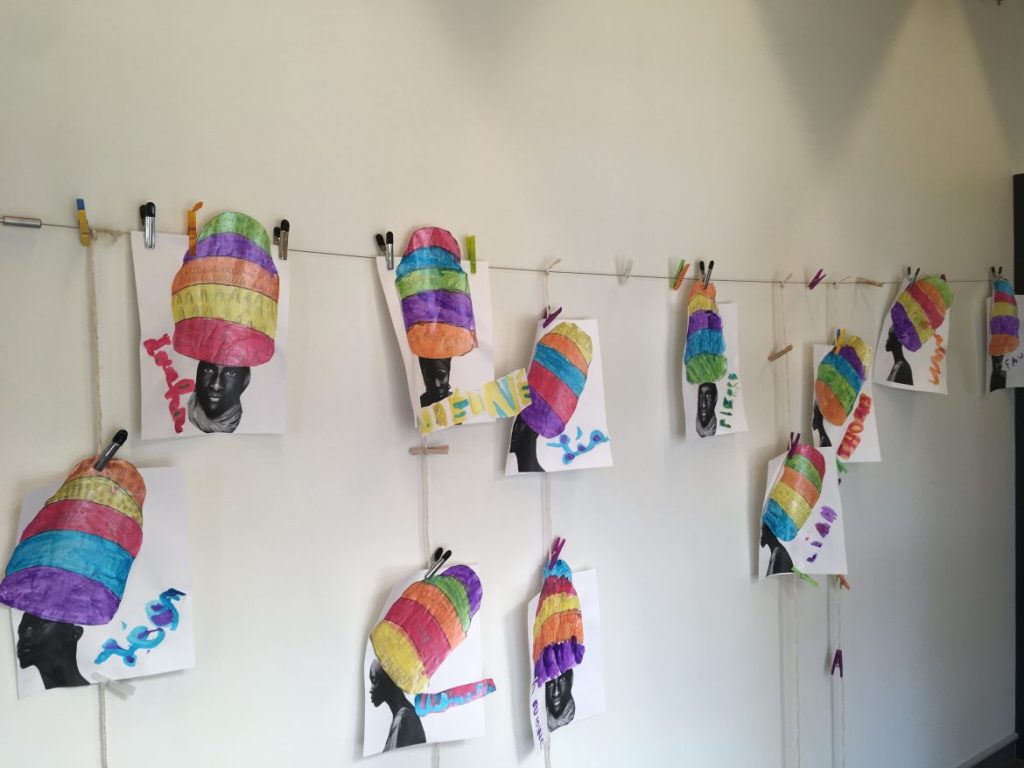 Les GS-CP de Lanobre travaillent actuellement sur le thème de l’Afrique. À la façon de l’artiste espagnol Raul Guerra, ils ont habillé de magnifiques turbans colorés des portraits.