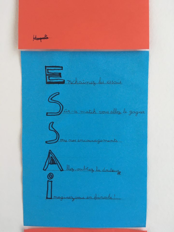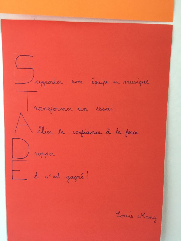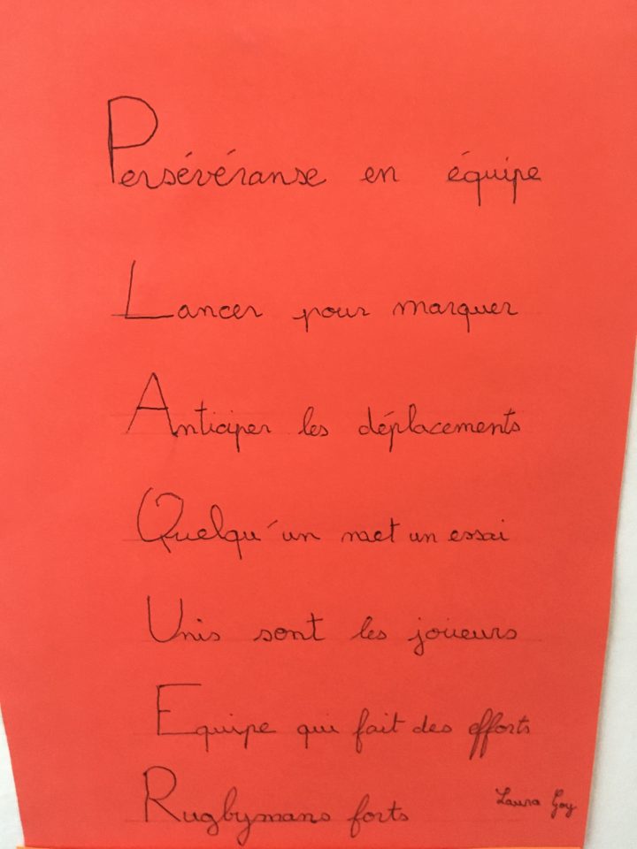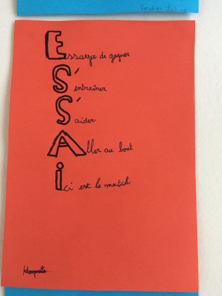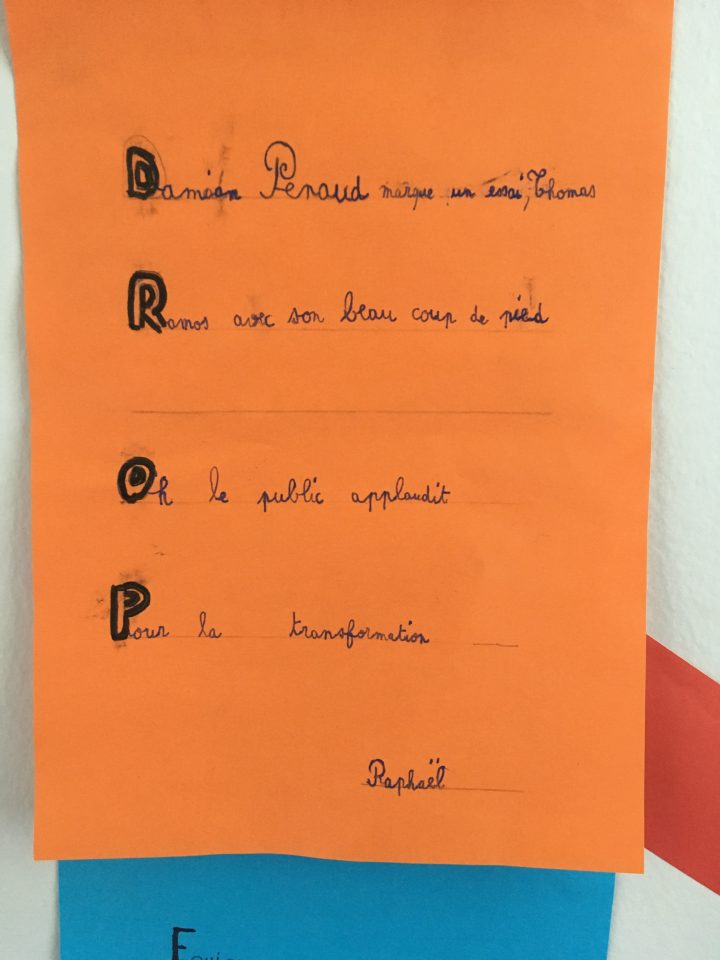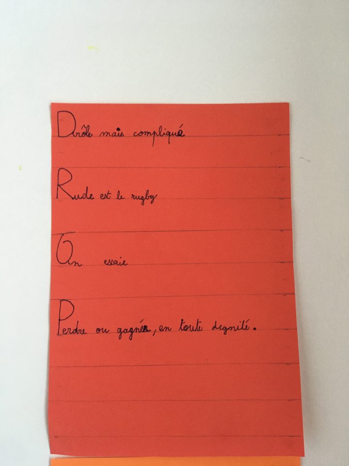 Les élèves ont réalisé des acrostiches sur le thème du rugby.