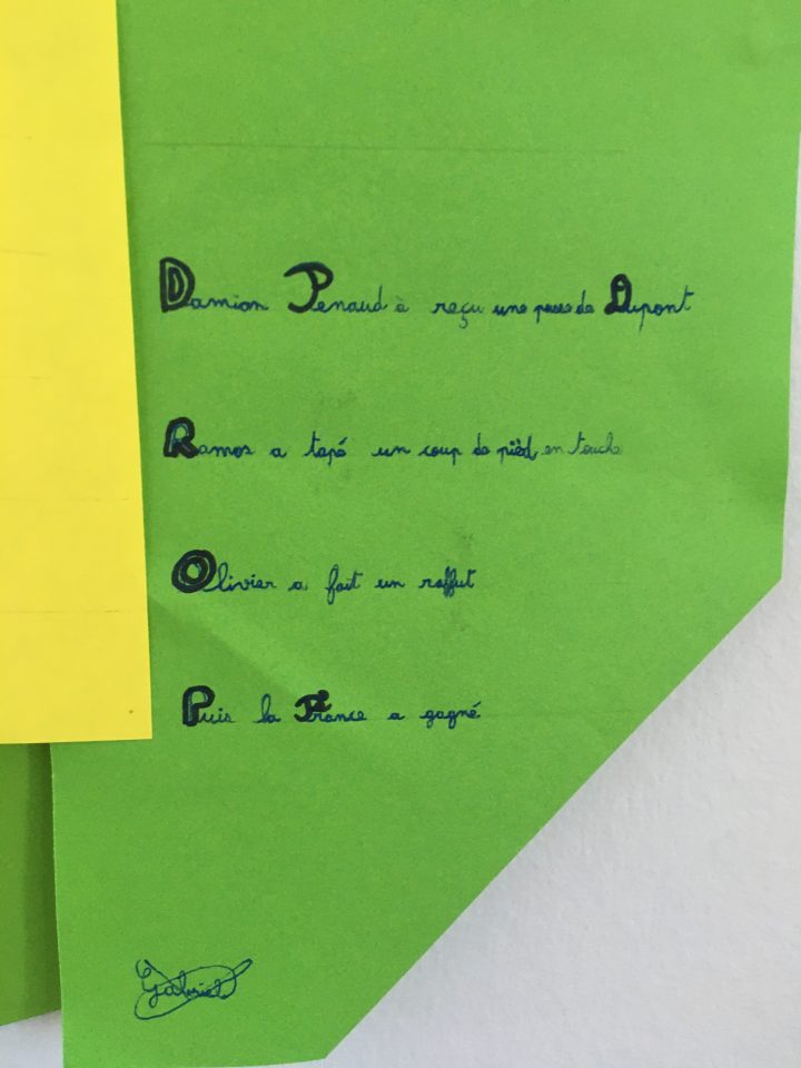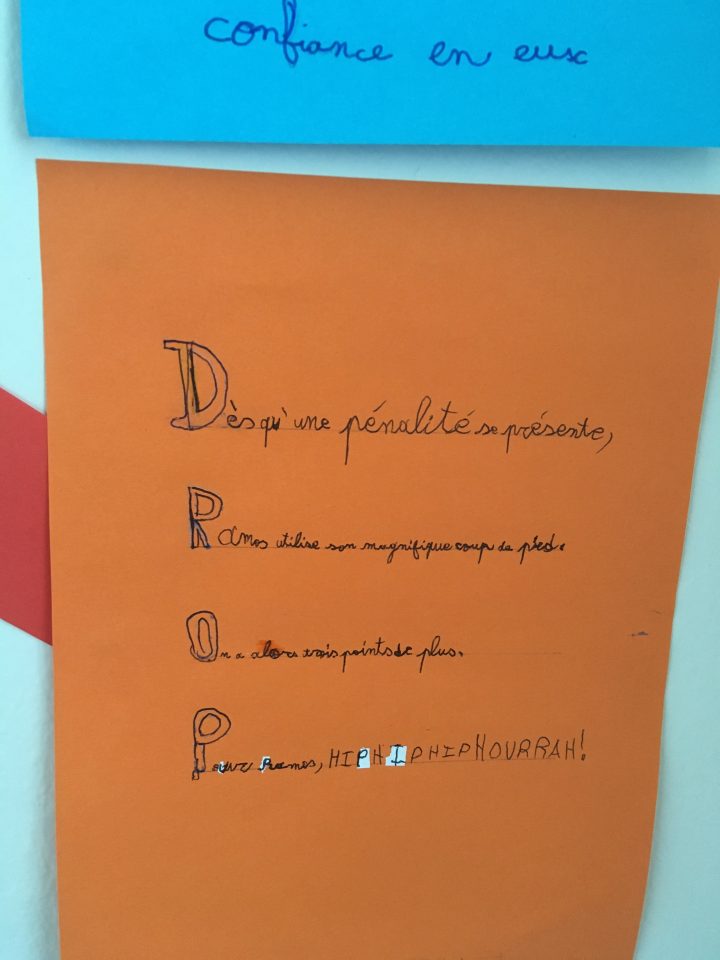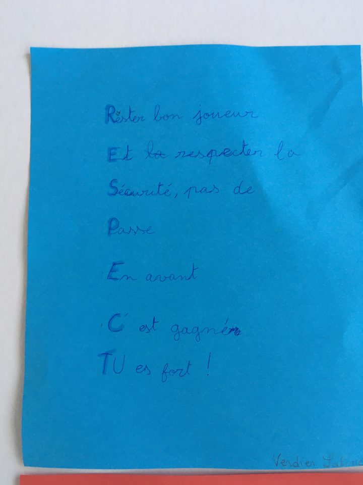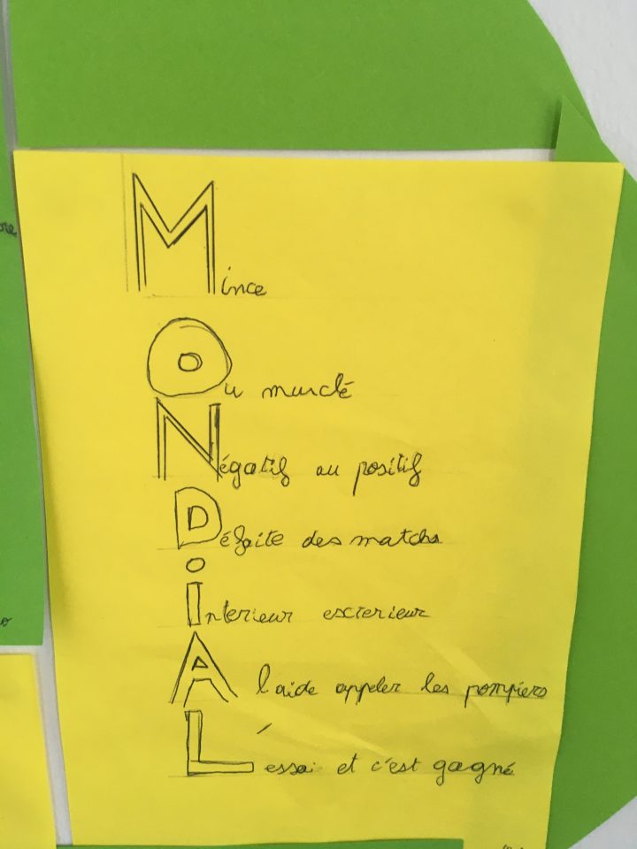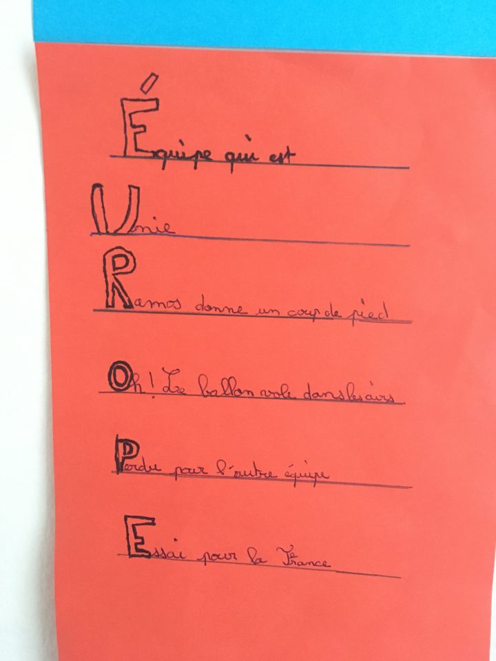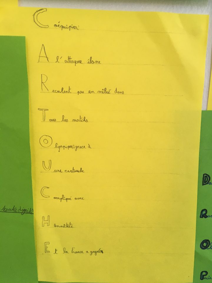 Les élèves ont réalisé des acrostiches sur le thème du rugby.