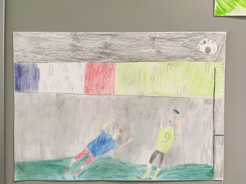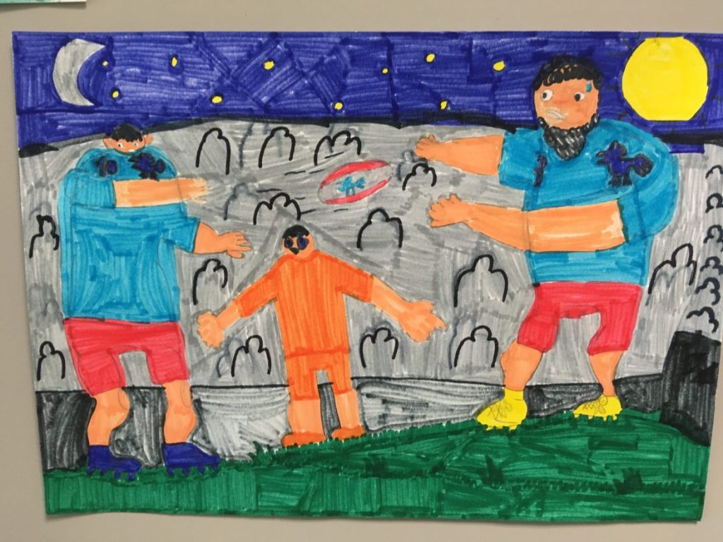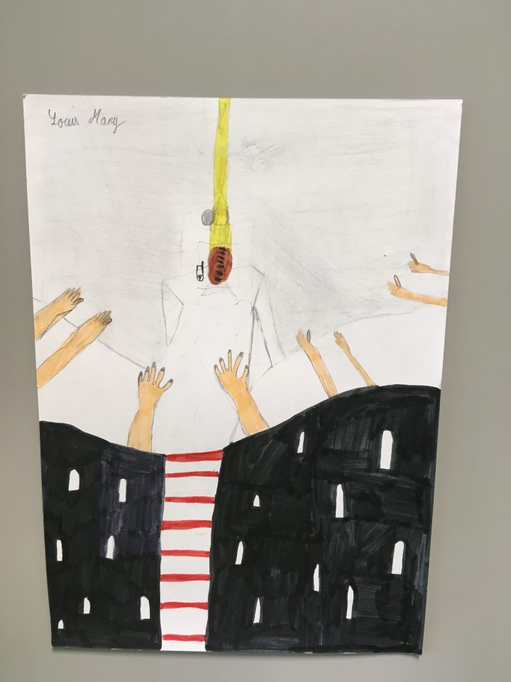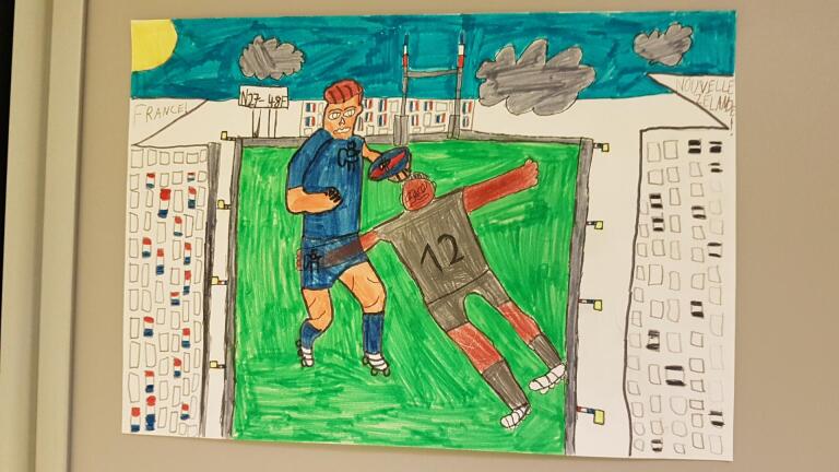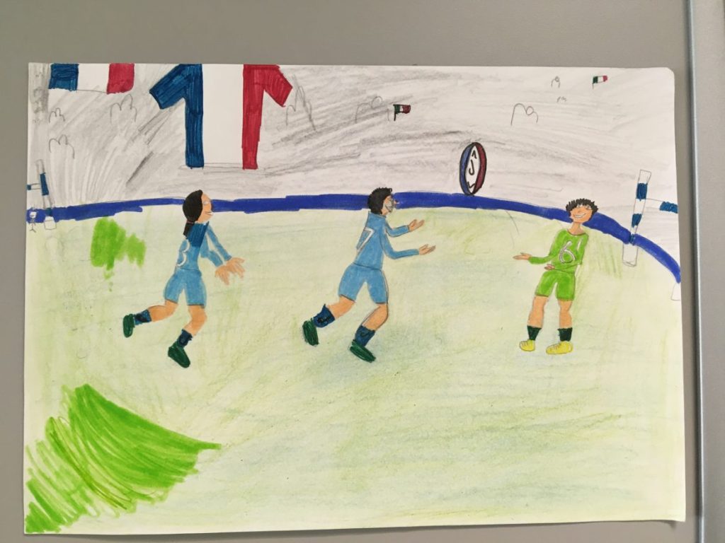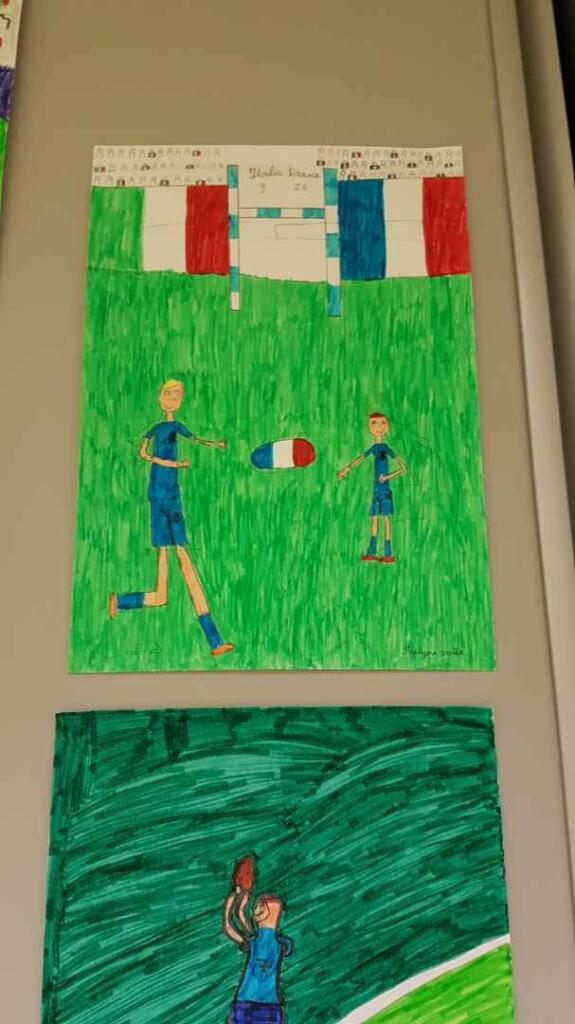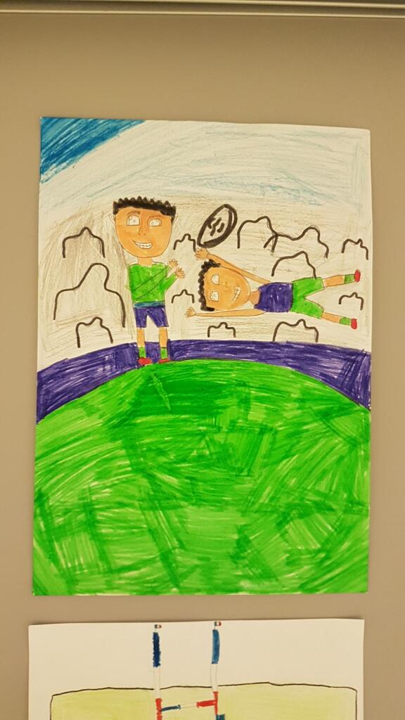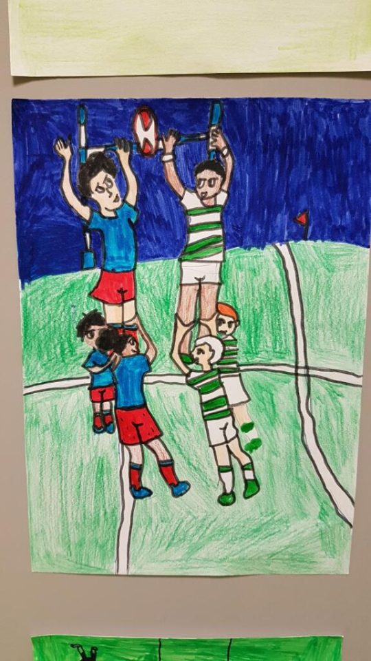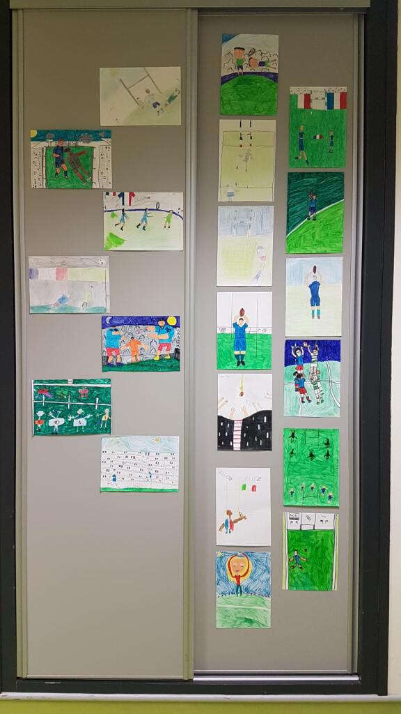 Ils ont également travaillé sur les gestes du rugby en arts plastiques ; voici leurs productions.