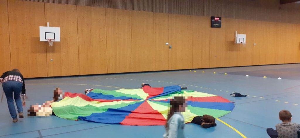 Ils se sont exercés à la danse, sur un parcours de motricité. Ils ont aussi réalisé une œuvre collective en arts plastiques avec des sportifs et leurs accessoires. Les élèves se sont questionnés sur l’importance et la composition du petit déjeuner. Ils se sont mis dans la peau d’un malvoyant en essayant le cécifoot pour découvrir le parasport. Ils ont enfin coopéré avec des exercices autour d’un parachute !
