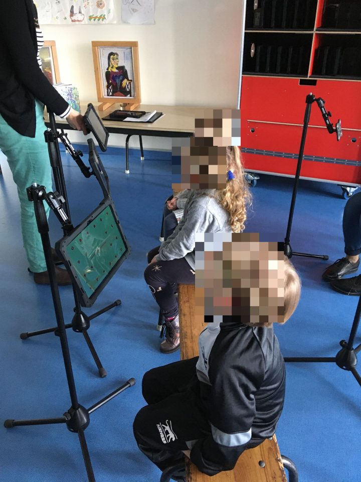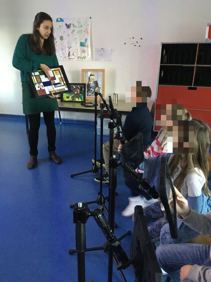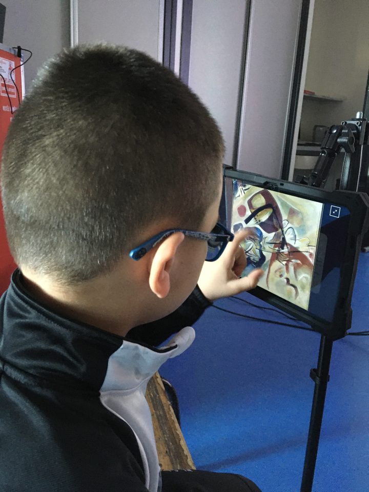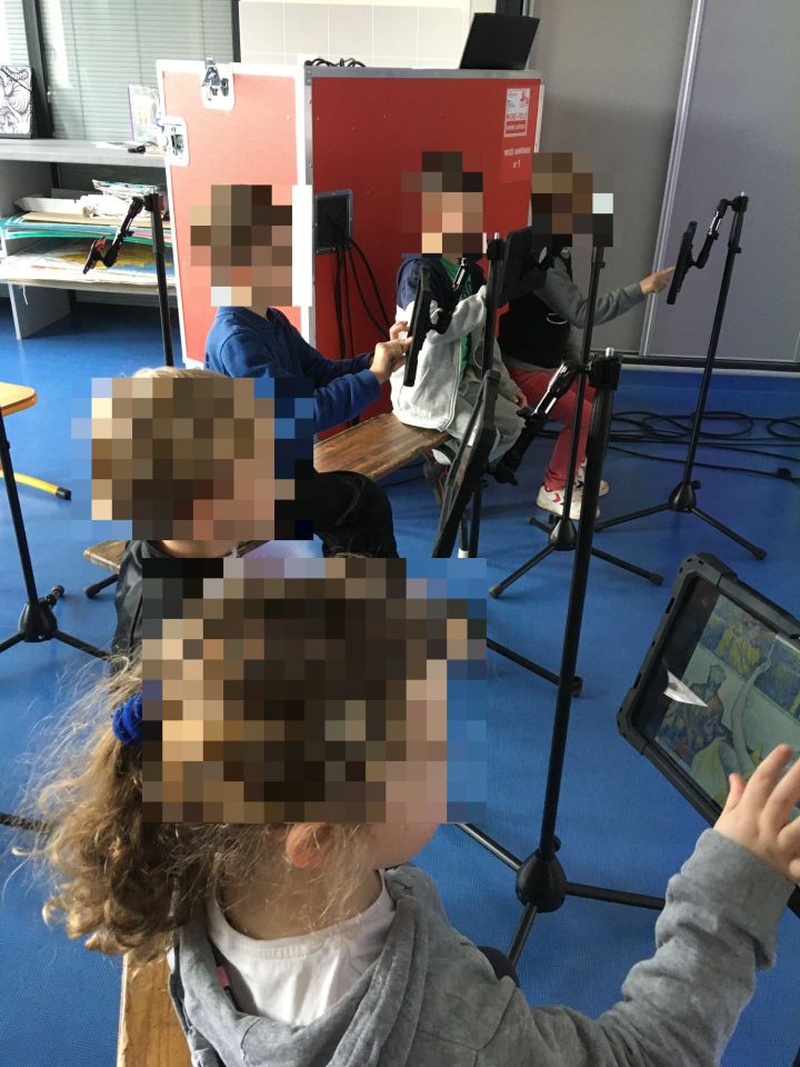 Ensuite, Adeline Giaccio a préparé des médiations artistiques  ; elle a proposé aux enfants des activités adaptées à chaque tranche d’âge. Le côté ludique de cet outil est renforcé par l’accès à des tablettes, permettant une interactivité, qui enrichit les échanges dans les médiations.