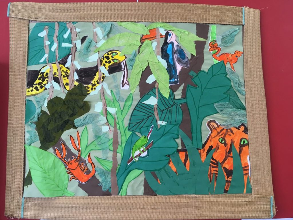 Les élèves ont pu développer leur sens de l’observation, de coopération et expérimenter diverses techniques plastiques : la photographie, les papiers découpés, la peinture, les pastels, les craies grasses et diverses gestes techniques : le cadrage, le déchirage, le découpage, le coloriage, le collage, l’assemblage…
