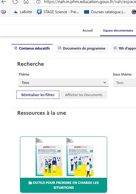 Vous trouverez dans la plateforme pHARe de nouveaux outils de prise en charge des situations. Vous les trouverez dans l’espace documentaire de la plateforme, rubrique CONTENUS ÉDUCATIFS.