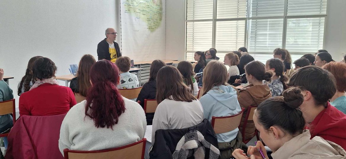 Tanguy Viel a passé toute la semaine du 25 novembre au lycée, intervenant dans les cours de français de trois classes de première et rencontrant ses lecteurs à la Médiathèque du Bassin d’Aurillac. Valentine et Mélodie reviennent sur cette semaine particulière passée en sa compagnie.